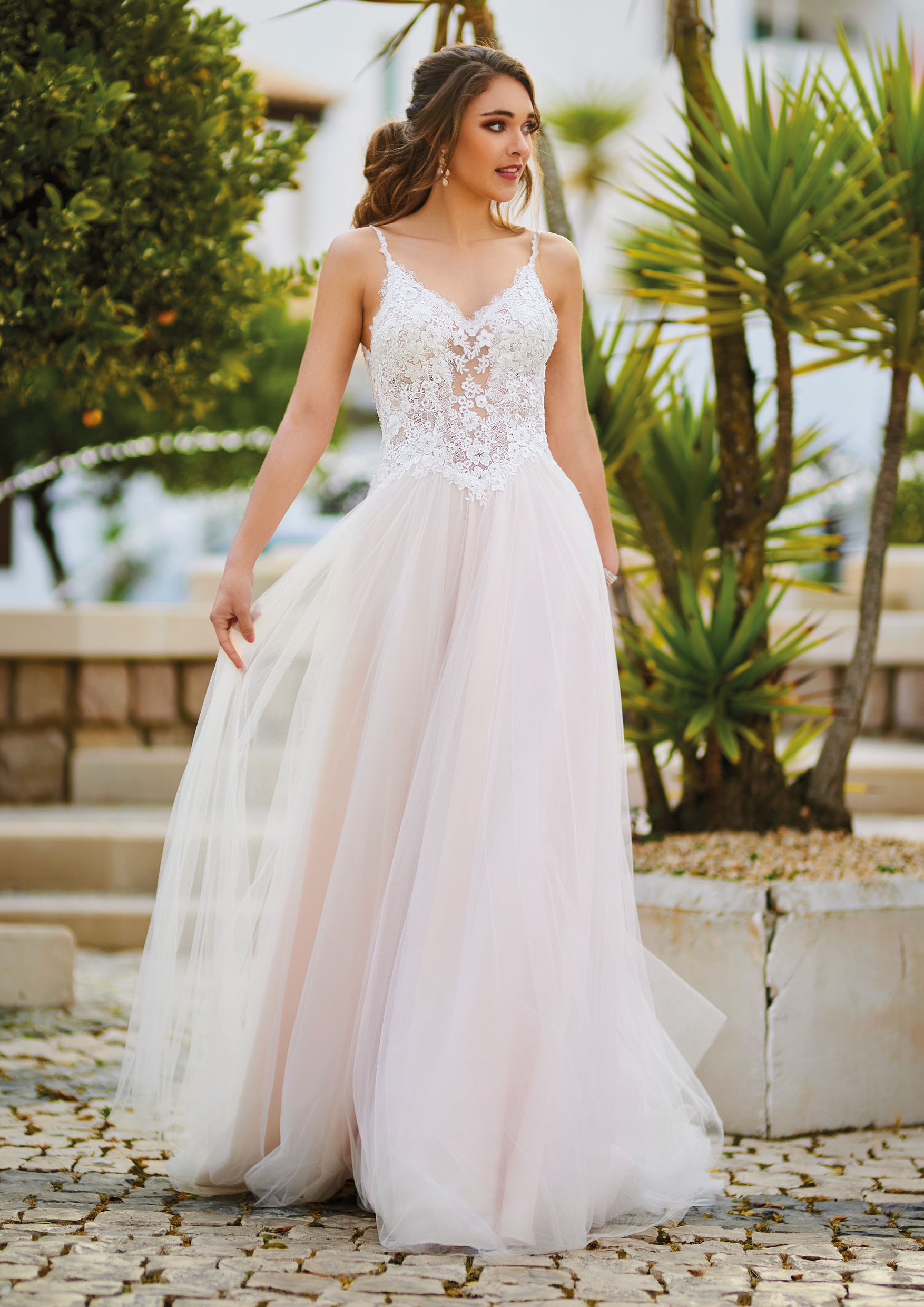 Probeer je niet te veel vast te pinnen op een jurk of een bepaald model, pas in de winkel kun je zien of dit model wel bij jou past, ga dus zo blanco mogelijk de passessie in.