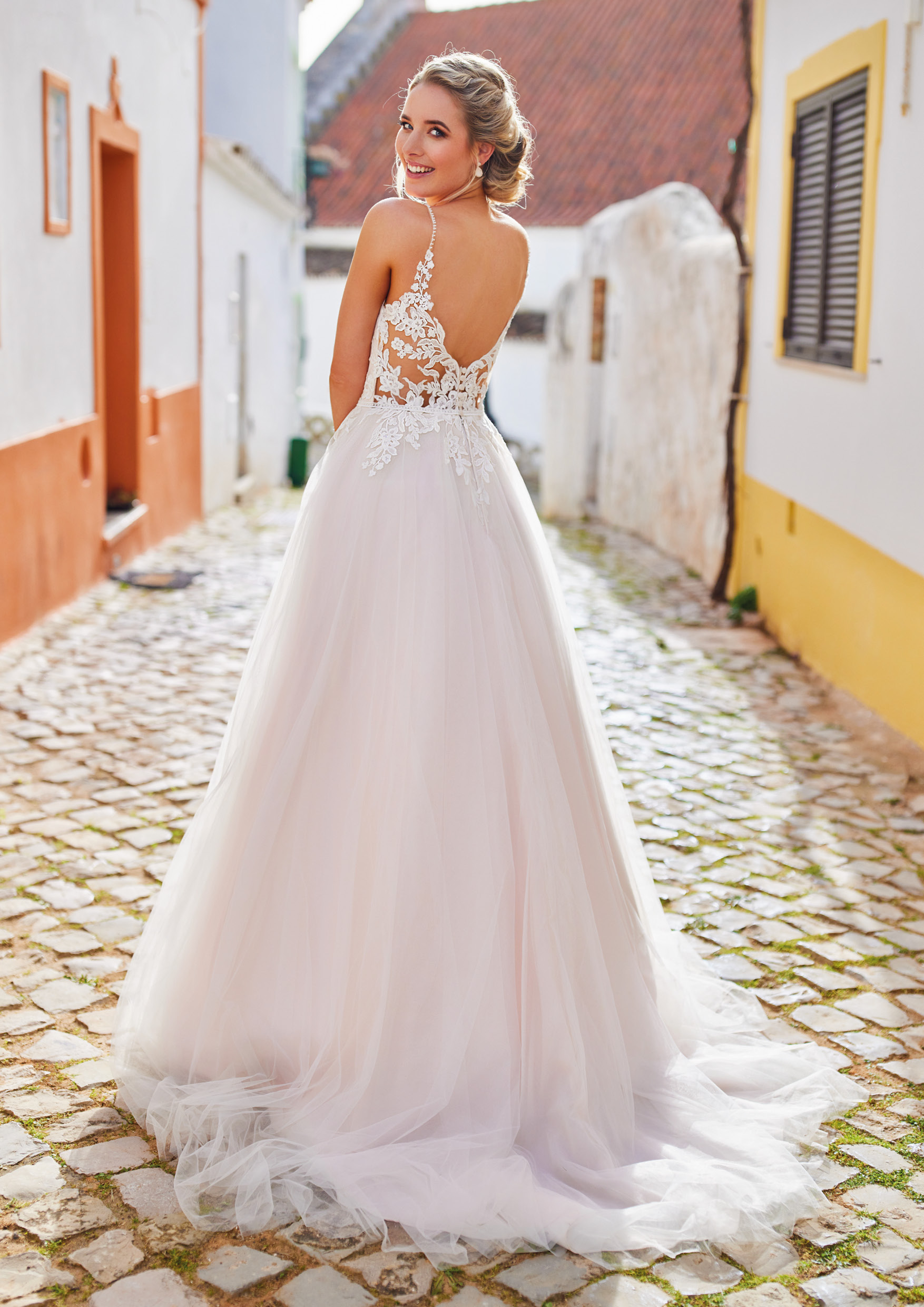 Probeer je niet te veel vast te pinnen op een jurk of een bepaald model, pas in de winkel kun je zien of dit model wel bij jou past, ga dus zo blanco mogelijk de passessie in.